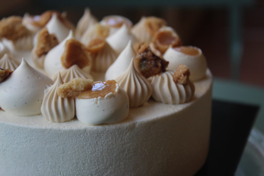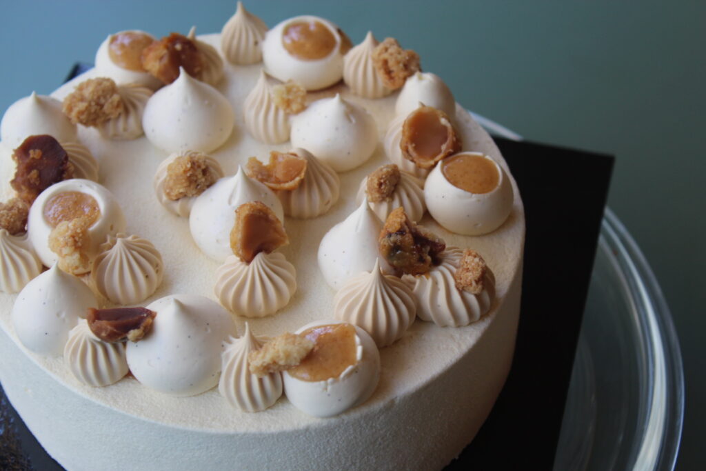Entremets vanille, dulcey, macadamia 6 personnes – 45,00 €